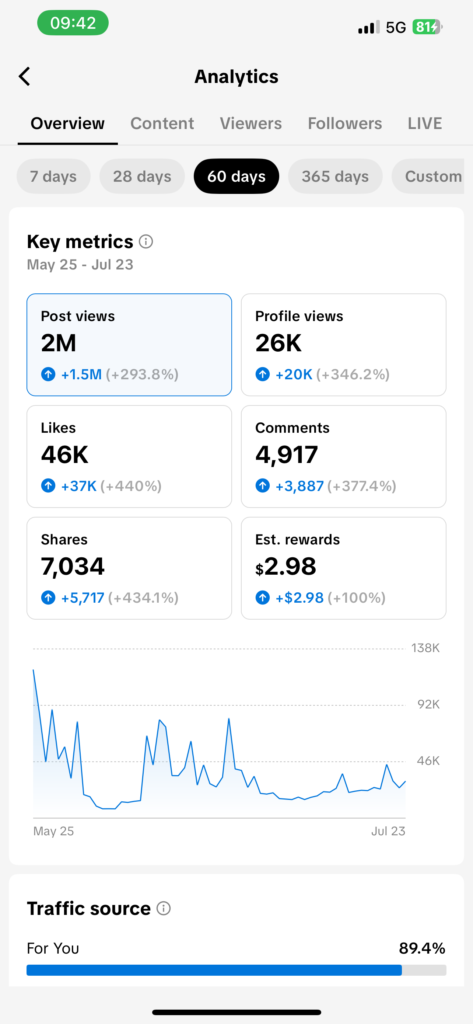 - Replicate success: If a video goes viral, build on it. Keep the same hook and storytelling format, just swap in fresh content.