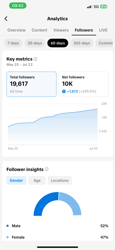 After that, I launched a TikTok channel and committed to posting daily. In just few months, I gained 20,000 followers. My YouTube channel currently has around 10,000 subscribers.